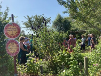 bezoekers zijn ook welkom om – bescheiden! – te komen plukken en mee te helpen zorgen voor de tuin.