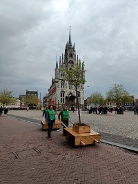 Gouda Bruist en STADSKANT zijn het initiatief van de wandelende bomen gestart om op een ludieke manier aandacht te vragen voor vergroening, klimaatadaptie en biodiversiteit in de stad. En om bij te dragen aan verbinding in de buurt.