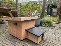 Egels kunnen ziek worden als ze te lang te nat blijven. Daarom hebben we ook voorzien in plekken waar ze kunnen schuilen, en er is zelfs een Egelstichting-goedgekeurd winterverblijf.